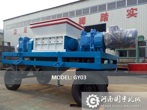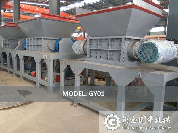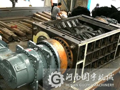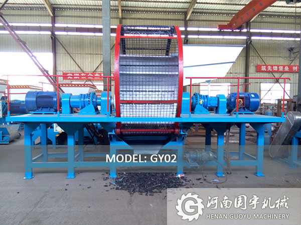 1- 轮胎撕碎机: 轮胎撕碎机广泛应用于轮胎回收。轮胎撕碎机内刀辊根据实际生产需要和具体的撕碎要求,基本分为四种类型。国宇有双轴撕碎机和四轴撕碎机可供您选择。
